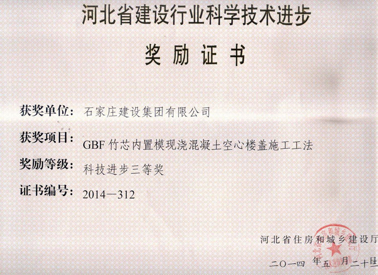 GBF竹芯內置模現澆混凝土空心樓蓋施工工法